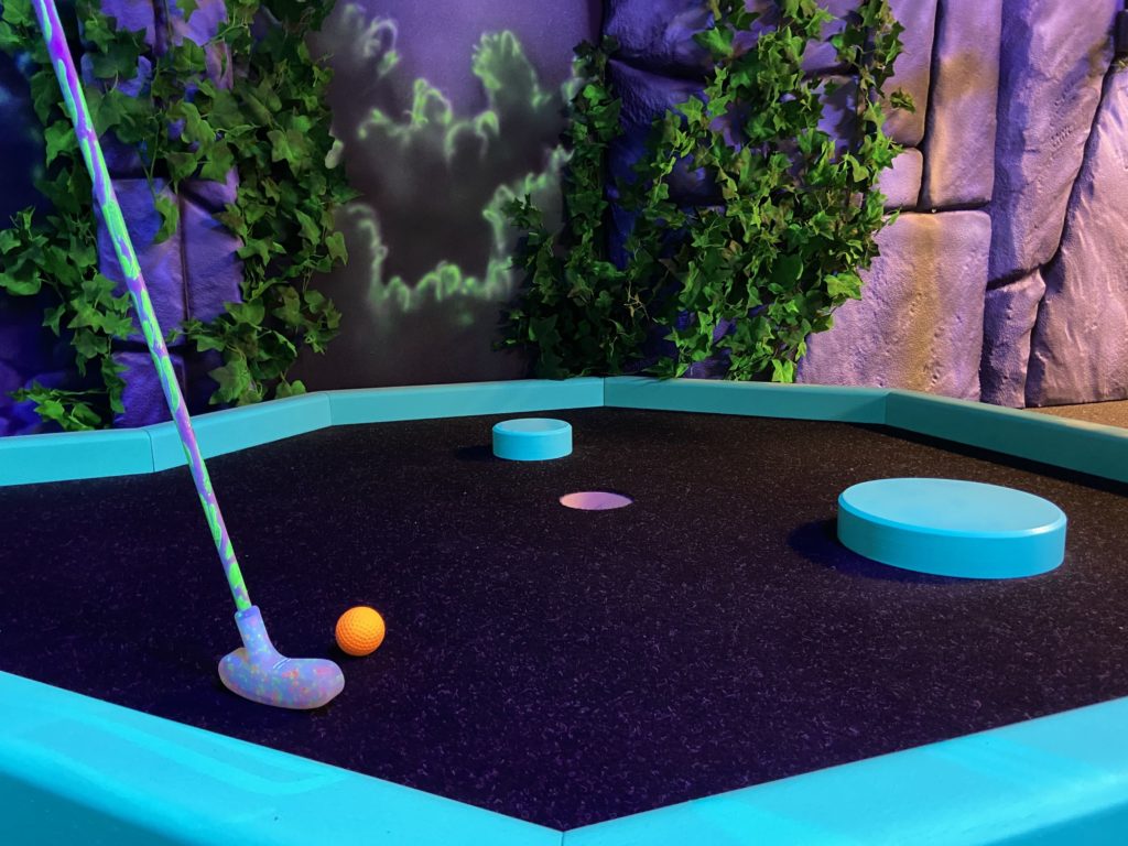 In de nieuwe Glow Jungle Golf stap je een mysterieuze jungle in waar alles licht geeft. De ruimte is volledig in blacklight, gevuld met waanzinnige dieren, kleurrijke decorstukken en special effects. Je speelt vijftien holes die steeds uitdagender worden. Het is spannend, grappig en soms een tikje verrassend, precies zoals je het wilt hebben bij een glow in the dark avontuur.