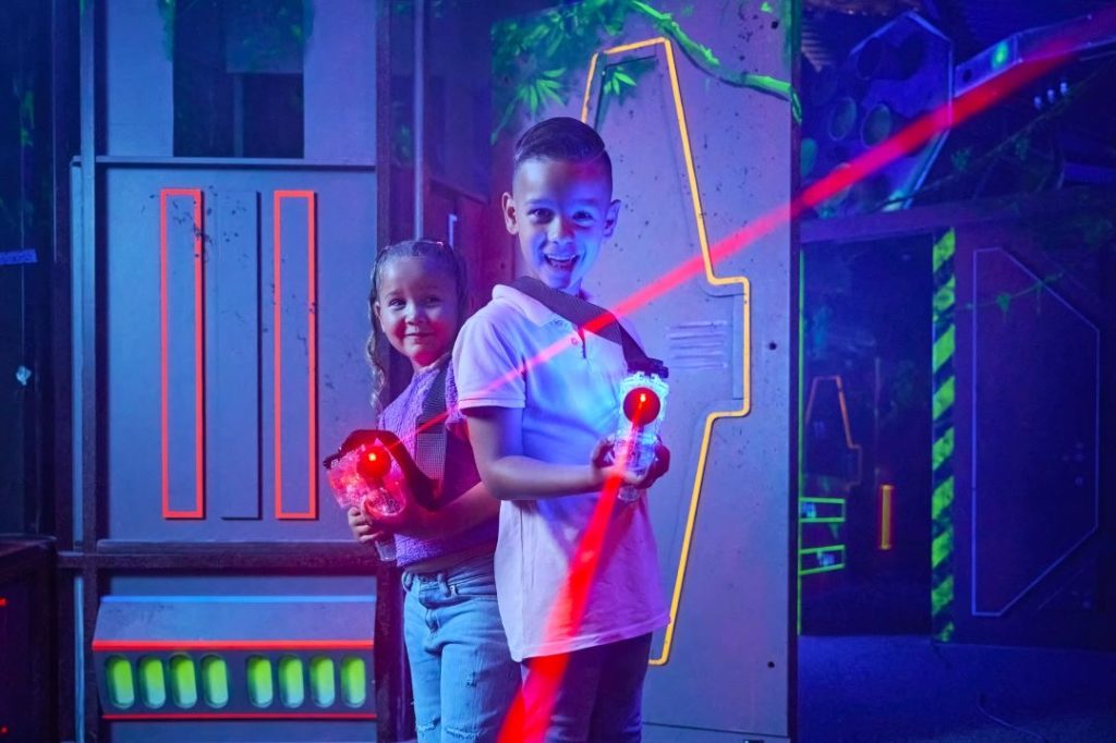 In de donkere lasergame arena wacht een uitdaging vol lichtstralen, spanning en teamwork. De ruimte wordt verlicht door blacklights en creëert een echte game omgeving. Daag je vriendjes of familie uit, duik achter obstakels en scoor zoveel mogelijk punten. Ideaal voor kinderfeestjes en sportieve spelers die houden van een beetje competitie.